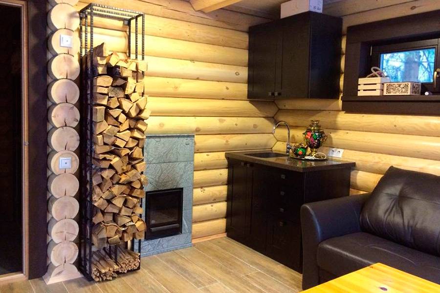 Комната отдыха в бане из брусаИсточник hr.aviarydecor.com