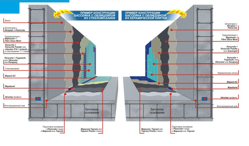 Конструкция стационарных бассейнов в корне отличается от сборно-разборных видов, она имеет свои особенности: