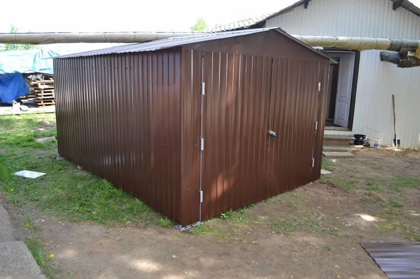 Если принято решение делать такой гараж, то его каркас нужно выполнить с применением стальных труб или профилей. После чего так называемый скелет следует обшить металлическими листами, толщина которых должна составлять не менее 3 мм. Конструкцию рекомендуется окрасить, чтобы обезопасить ее от негативных атмосферных влияний.