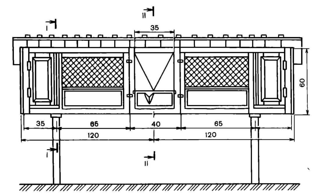 В целях рационального расхода материала и для удобства в обслуживании рекомендуется строить парные клетки. В таком случае длина увеличится до 3 м.
