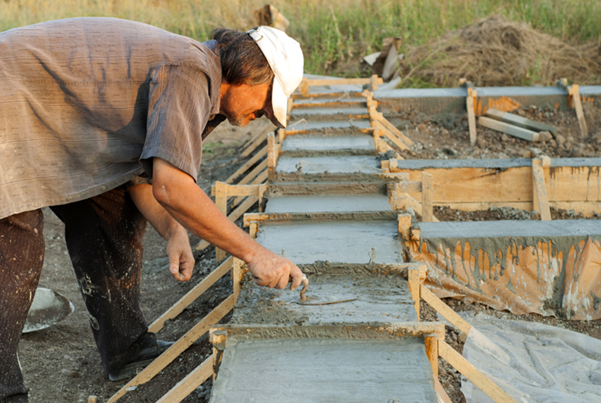 - Бетон должен застывать примерно месяц, после чего можно приступать к основному строительству. Для начала фундамент покрывают несколькими слоями рубероида, чтобы защитить его от проникновения влаги. Для заливки желательно использовать клеевую смесь. Её можно найти в любых строительных магазинах. Но также подойдёт и обычный бетонный раствор.