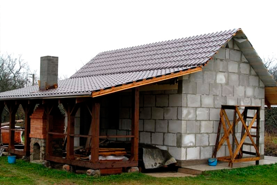 Большие габариты банного строения вызывают желание использовать более дешевые материалы для возведения стен, кровли, фундамента. Но недорого часто продают некачественные кирпичи, цемент, пеноблоки сделанные кустарным методом. Если нужно удешевить строительство, лучше уменьшить размеры парилки, убрать из проекта террасу.