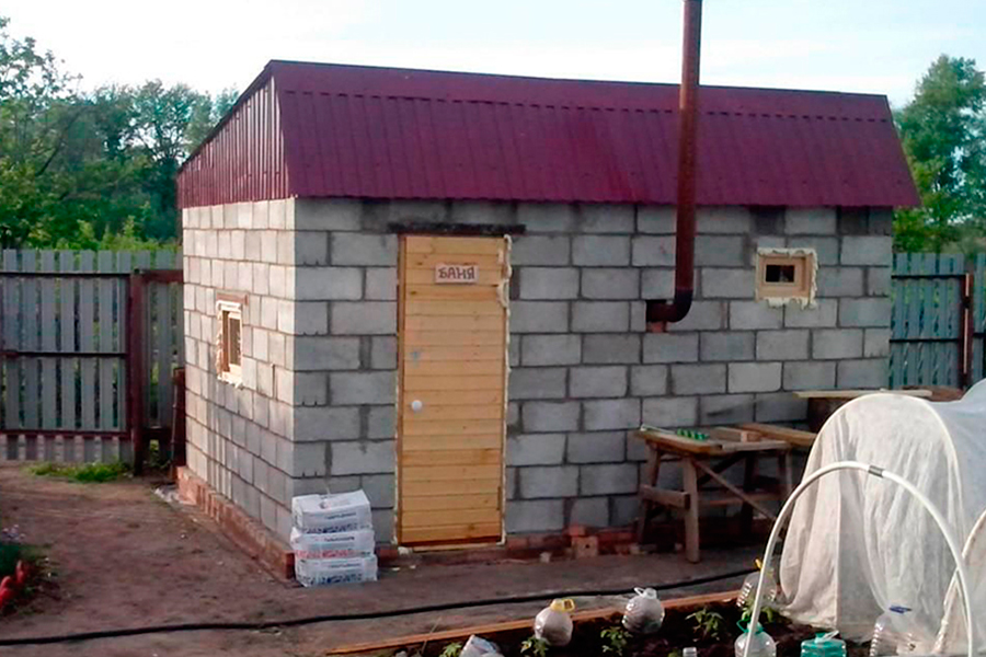 Этот материал также стал пользоваться спросом для возведения бань не так давно, но уже заслужил свое уважение среди потребителей. Конструкции из пеноблоков отличаются небольшим весом, не требует возведения серьезного фундамента.