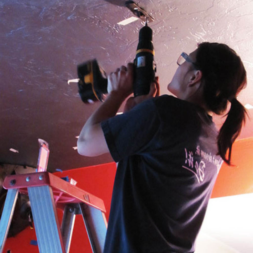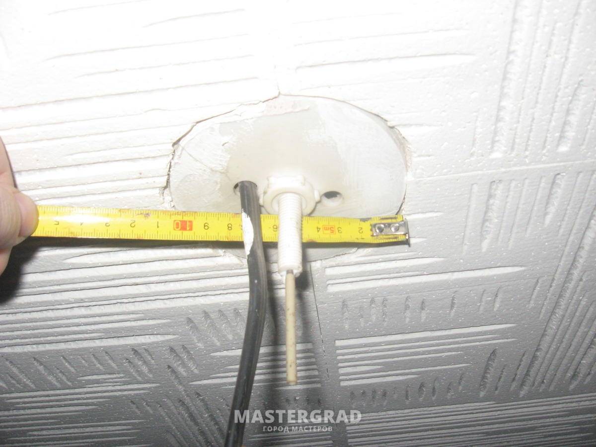 - Перед сверловкой потолочной поверхности необходимо удостовериться в отсутствии на этом месте скрытой проводки.
