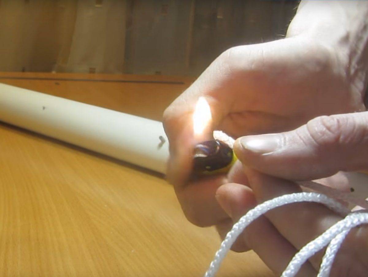 ![]() | После стоит подготовить веревку: для сохранения формы, концы следует обжечь зажигалкой. |