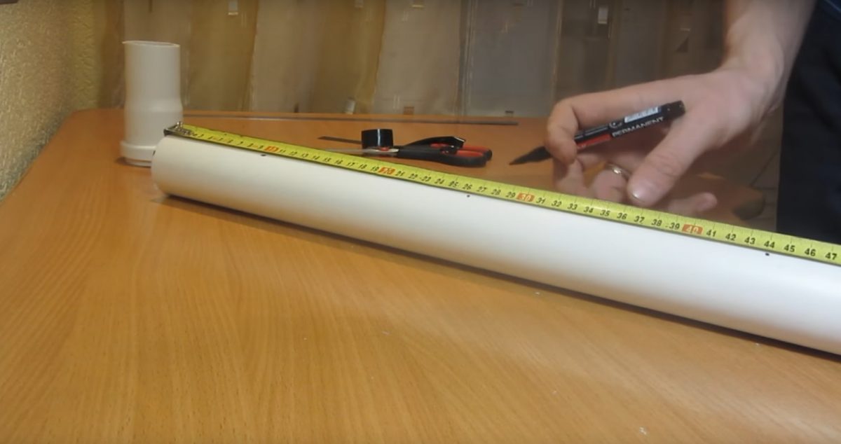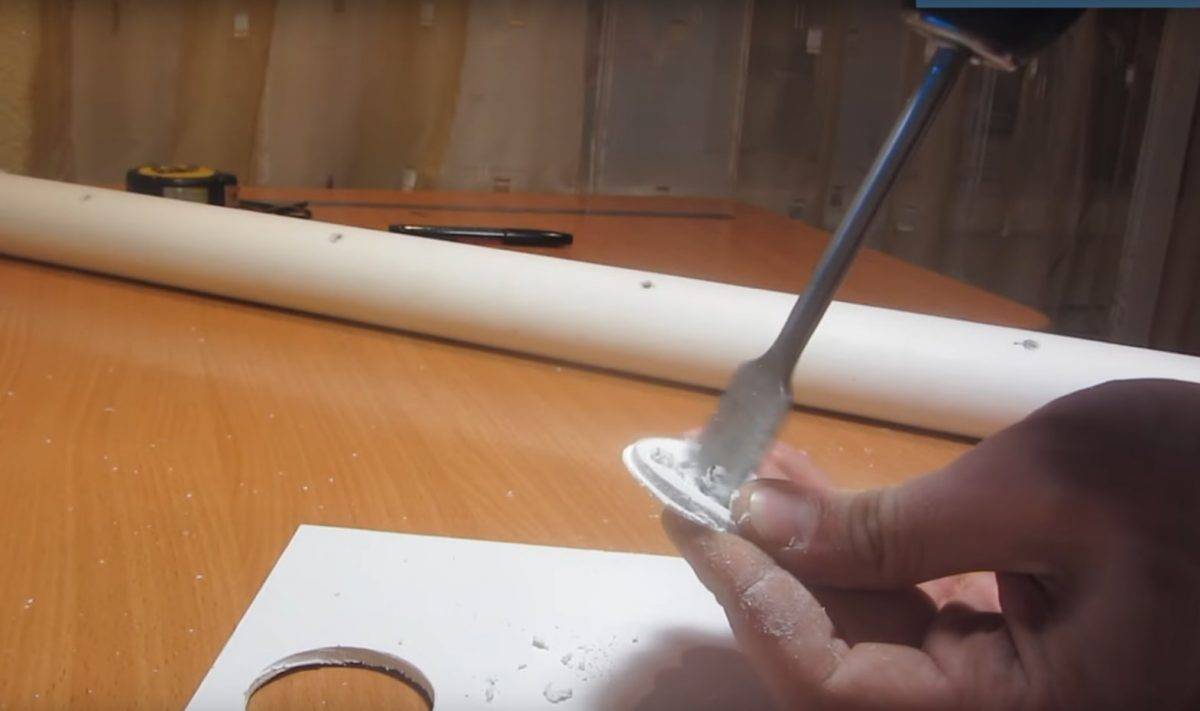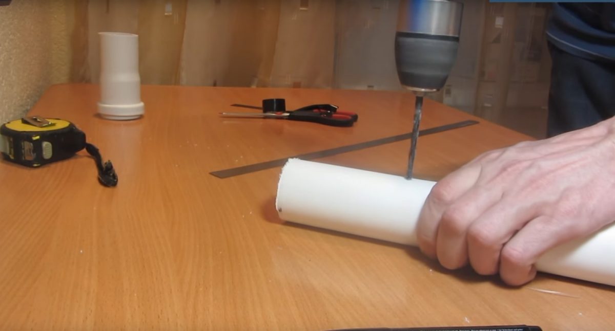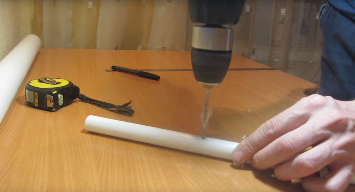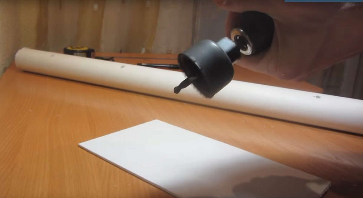 ![]() | Кусок трубы обрезается до нужного размера и на него приклеивается белая крышка. С ней скручивать устройство удобнее. |