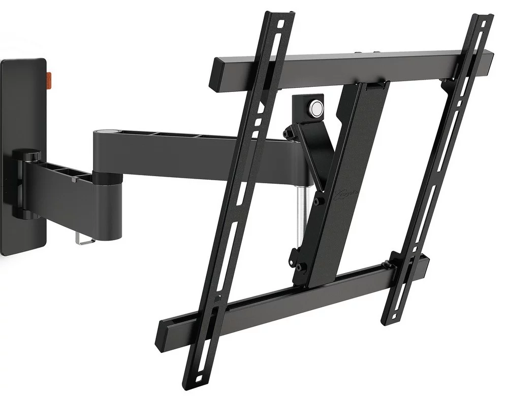 Крепление для плоских телевизоров с диагональю от 40 до 70 дюймов и массой до 45 килограммов. Кронштейн имеет шарнирные поворотные конструкции, которые бесшумно и легко корректируют положение экрана: до 10 градусов по вертикали и на 140 градусов вправо-влево. Изделие имеет конструкцию «2х2 колена», что обеспечивает быструю сборку и плавность движений. Места крепления к стене скрыты пластиковыми накладками, что обеспечивает эстетичный вид.