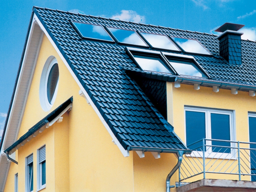 Коньковую планку с каждой стороны прикрепляют к листам металлочерепицы посредством коньковых саморезов через волну. Нахлест между коньковыми элементами составляет 10 см.- При монтаже мансардного подкровельного помещения потребуется монтаж некоторого количества мансардных окон.