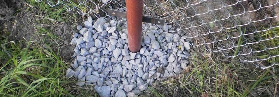 Слябинг, также известный как сухая цементация, является наиболее универсальным способом возведения столбов ограждения вручную. Это заполнение ям щебнем или кирпичным щебнем, который затем послойно уплотняется.