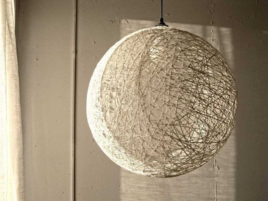 Вот, собственно, и все, стильный и оригинальный декоративный предмет для вашего интерьера готов. Как только с его изготовлением и подвесом будет закончено, вам останется только вкрутить лампу, отрегулировать светильник, чтобы он висел ровно, и убедиться, что она хорошо светит и обеспечивает прекрасное рассеивание.