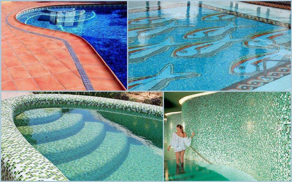 - Мозаика – стеклянная, керамическая, придает бассейнам эффект свечения. Цена первой достигает 500 дол. за 1 кв. м., поэтому чаще используют керамическую. Внешне отличия со стеклянной нет, но стоимость ниже в 7-8 раз.