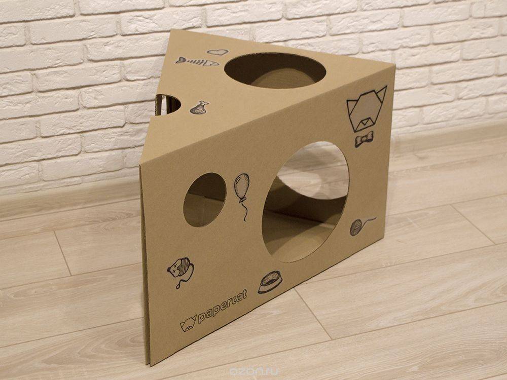Для того чтобы он был устойчивым к влаге, можно обклеить его самоклейкой. Однако сам картон является довольно непрочным, поэтому игривая кошка, которая обладает не очень спокойным характером, быстро приведет дом в негодность. Для таких котов лучше всего подойдут не бумажные, не картонные домики, а изготовленные из дерева, фанеры, или пластика.