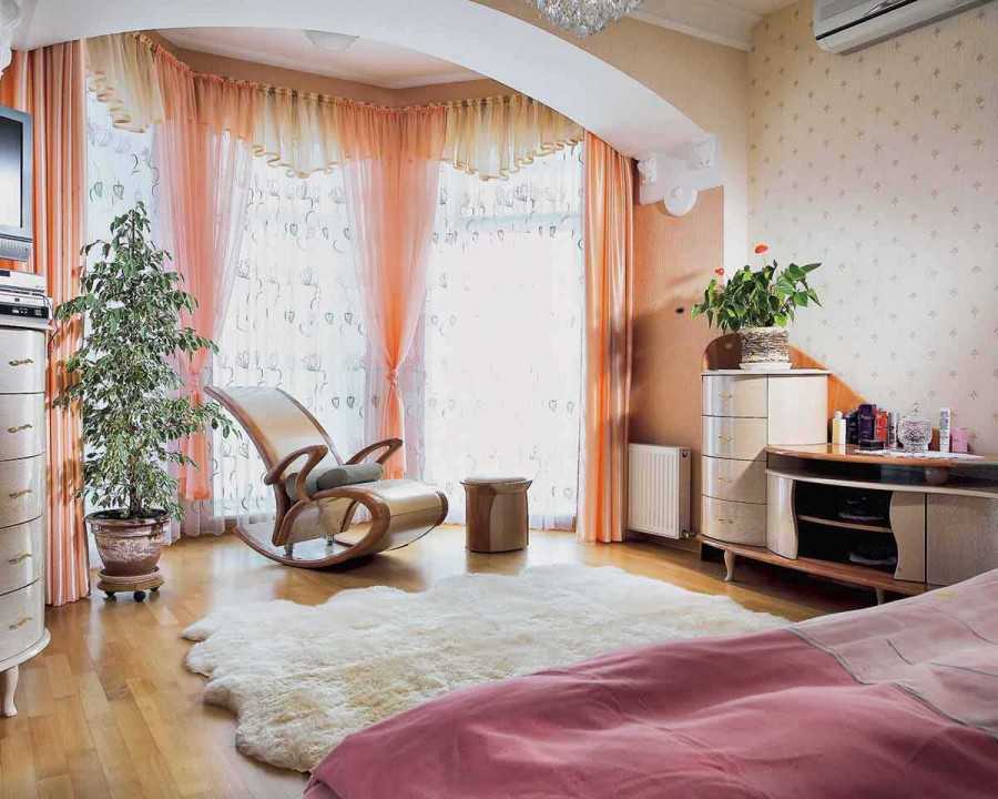Арочный проём с давних времён украшали обычными шторами, но и сейчас этот вариант оформления, хоть реже, но допустим. Вход маскируют лёгким тюлем, портьерой или плотной гардиной, которые будут служить как бы в качестве самой двери.