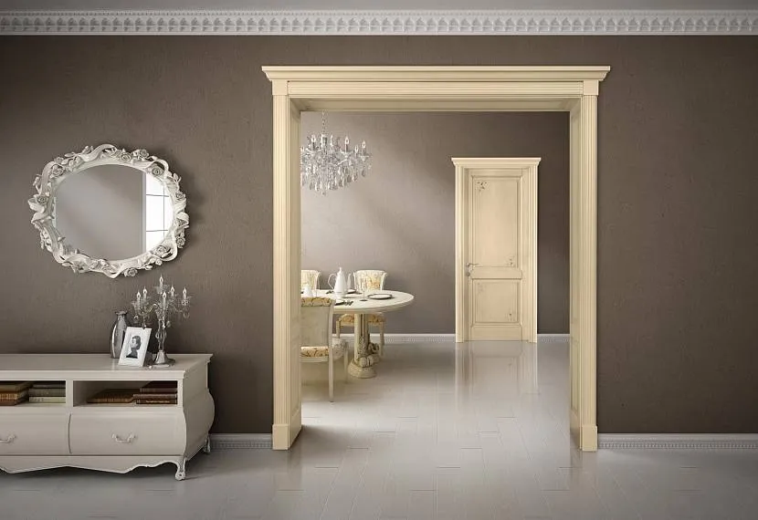 В современном стиле, таком как минимализм или хай-тек декоративная отделка может вовсе отсутствовать. Простая форма дверного проема может быть отделана тем же материалом, что и стены.