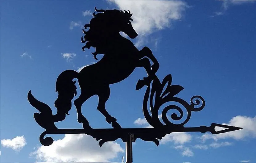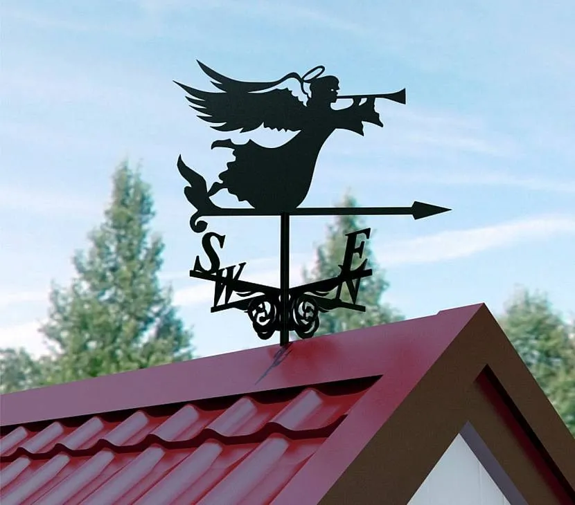 Флюгер на крышу – устройство, используемое для определения направления и скорости воздушных потоков. Ветряк приводятся в действие порывам ветра: когда воздух воздействует на флюгарки, он начинает крутиться, указывая, куда он дует. Определяют направление по розе ветров, которая является указателем сторон света.