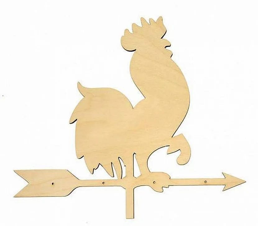 Конструкции из древесины и фанеры тоже встречаются. Но у них есть очевидная проблема: на них негативно влияют осадки и перепады температур. Чтобы продлить срок эксплуатации таких флюгеров, их покрывают специализированными лаками и составами.