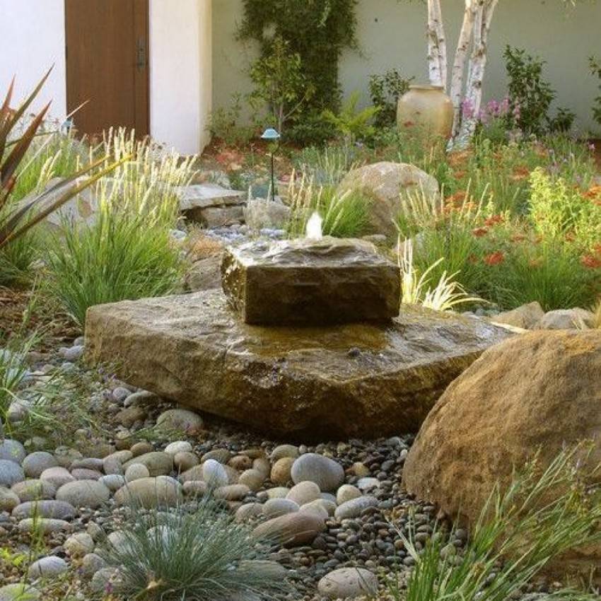 Не всегда есть возможность приобрести насос. Тогда соорудите декоративный фонтан для сада открытого типа: