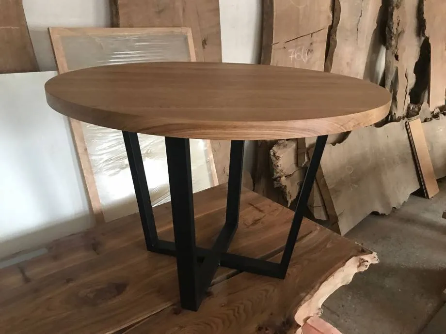 Чтобы сделать круглый стол, можно выбрать и простые материалы – листы МДФ или фанеру