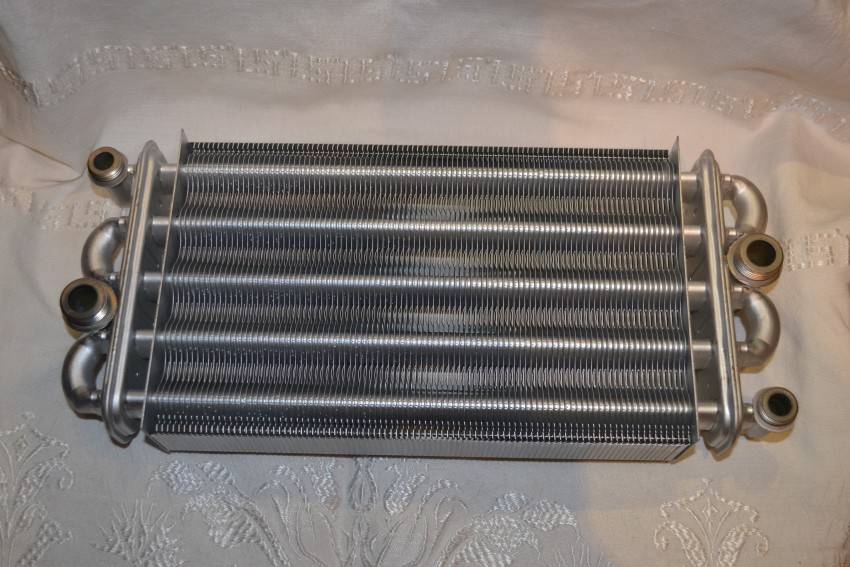 - Количество теплообменников двухконтурной модификации. Единый битермический элемент греет воду на отопление и ГВС. У агрегатов с двумя теплообменниками первичный задействуется для отопления, вторичный – для горячего водоснабжения.