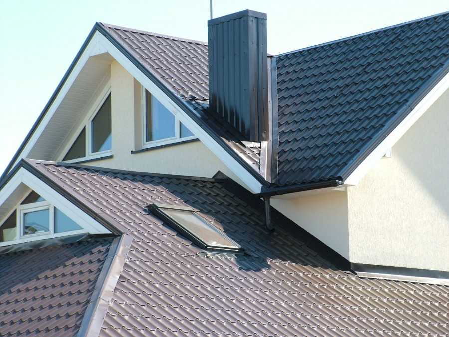 Кровля из металлочерепицы монтируется с применением доборных элементов. С ними крыша смотрится завершённой и функциональной. Комплектующие детали защищают настил от износа и протечек, что увеличивает срок эксплуатации конструкции. Улучшается и внешний вид здания.