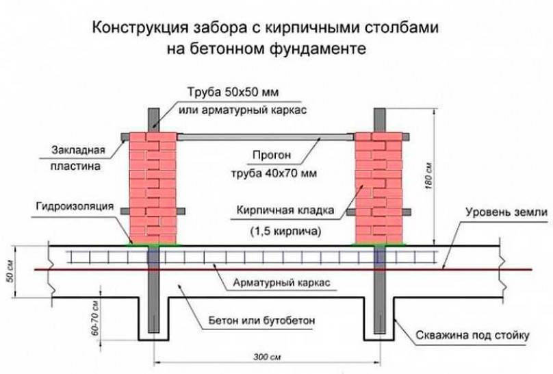 - Столбы планируется сделать кирпичными. Они создают чрезмерное давление на грунт и нуждаются в крепком основании, способном выдержать большую несущую нагрузку.