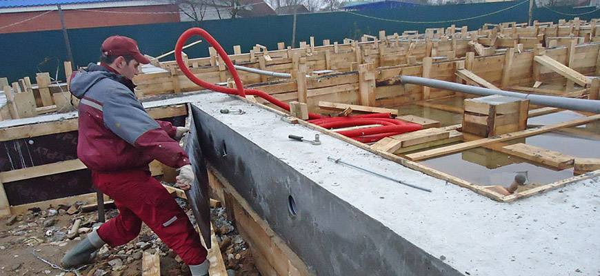 После распалубки фундамент обрабатывают специальными растворами, которые увеличат защиту поверхности от влаги и других отрицательных факторов.
