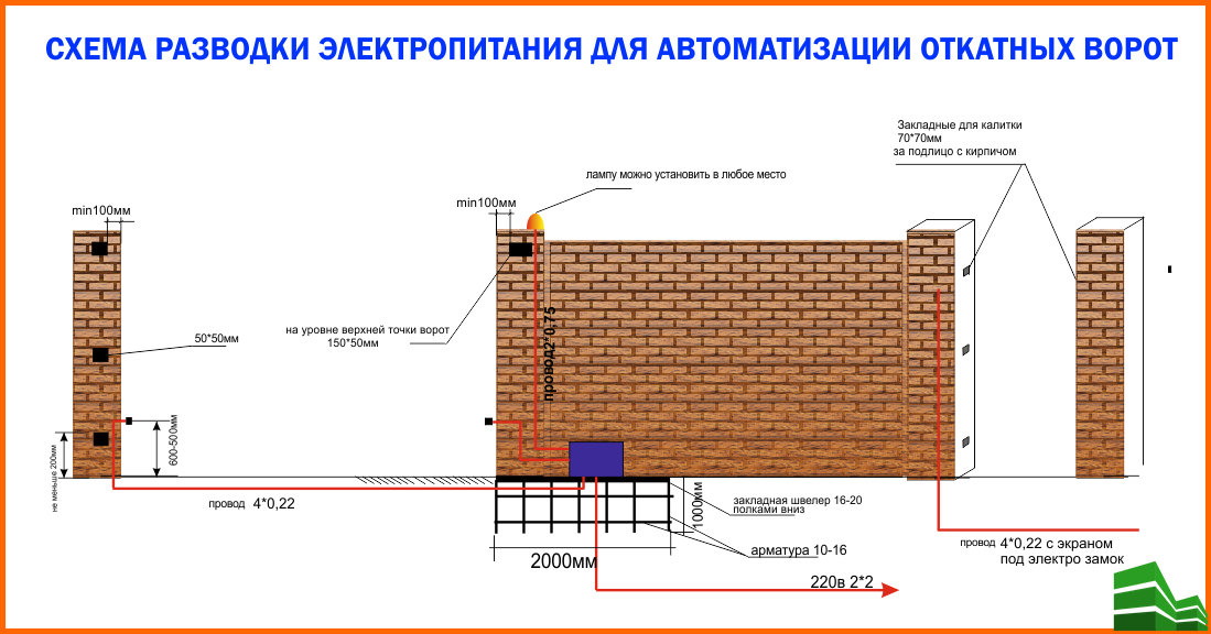 Внимание! В случае если Вы захотите предусмотреть установку автоматики для откатных ворот, то под проезжей частью Вам будет необходимо заранее проложить кабель