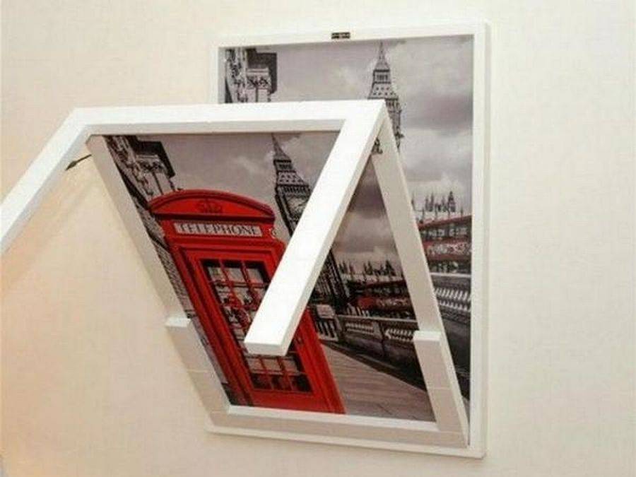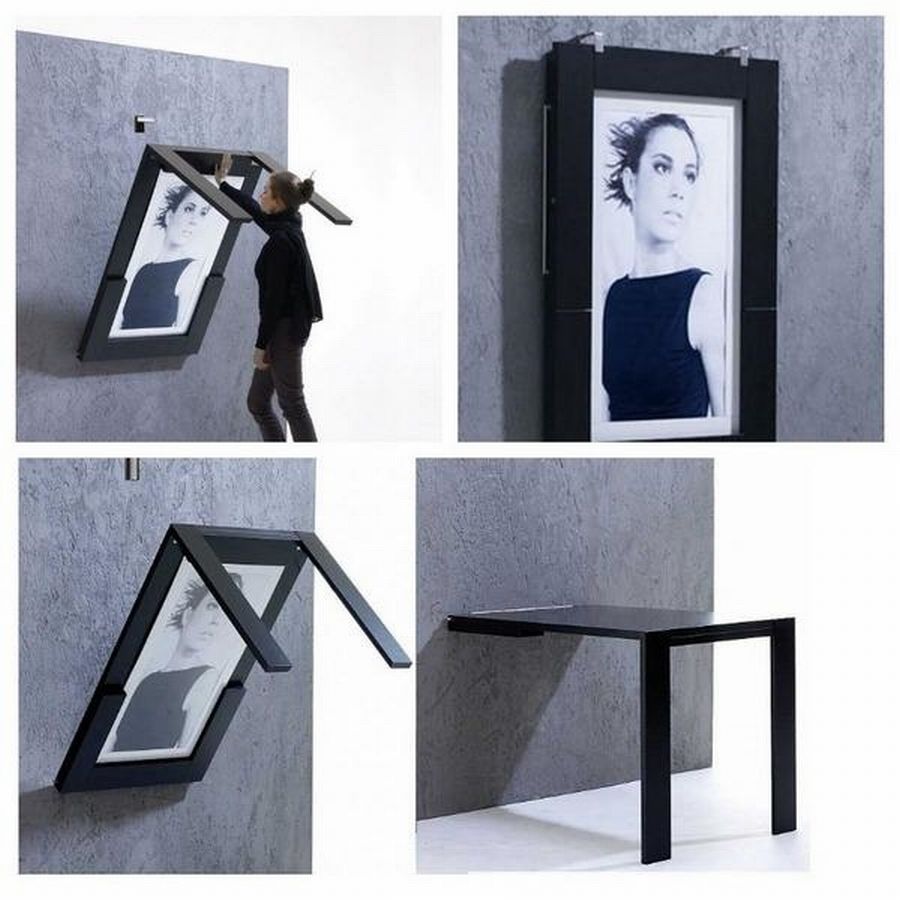 Эту картину вы наверно уже видели, это классический пример – стол превращается в раму для картины. Очень популярное фото в Pinterest . Дизайн этого столика разработали в итальянской студии Ivy Design. Рама состоит из двух частей, когда складывается, получается целая часть.