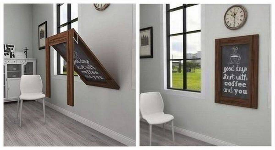 Проблемы рождают идеи, а потребность в прекрасном помогает превратить эти решения в красивые вещи. Умные люди придумали настенный откидной стол не от хорошей жизни. Если вы нуждаетесь в дополнительном пространстве и балансе организации на кухне или рабочем кабинете, при этом чтобы выглядело эстетически привлекательно, воспользуйтесь преимуществом настенного откидного стола картины, если не хотите, чтобы это выглядело, как обычная доска на стене. Вот 10 идей такой конструкции, можно купить или даже сделать настенный откидной стол своими руками, это не сложно.