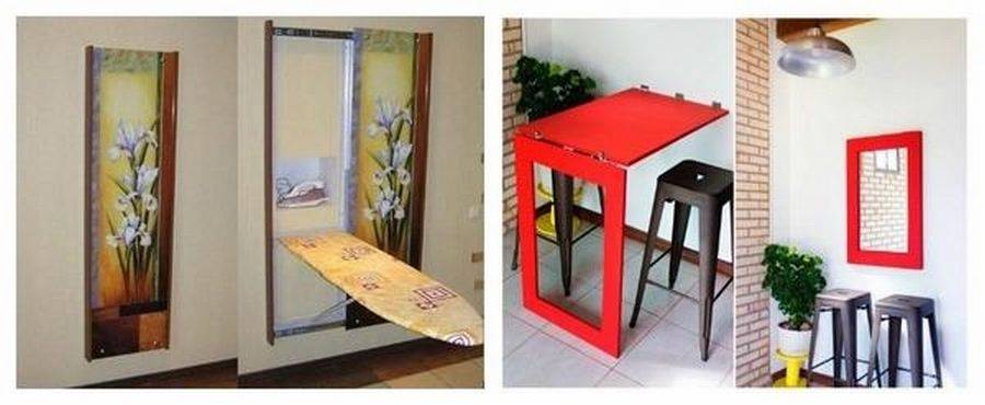Вам нравятся идеи столиков с картинами? Посмотрите еще, как можно задекорировать откидную гладильную доску и пример откидного столика на стену с зеркалом.