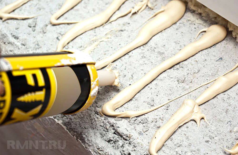 Самым старым вариантом установки подоконника на пластиковое окно является фиксация изделия при помощи специального состава. Сегодня такой метод применяется крайне редко в связи с появившимися более удобными и надежными способами.