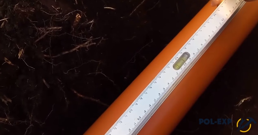 У траншеи должен быть уклон. При этом, чем тоньше труба, тем он больше. Так, для труб диаметром 50 мм на каждый метр понижение должно составлять 30 мм, диаметром до 110 мм — 20 мм, до 150 мм — 10 мм, более 150 мм — 8 мм.