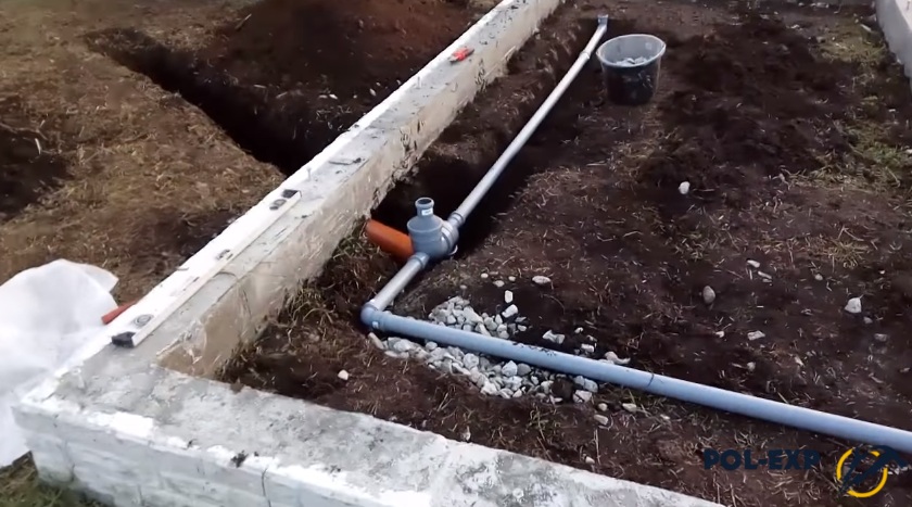 Вывести воду из подполья бани к месту утилизации позволяет система водоотвода. Состоит из канализационных труб, уложенных в траншею.