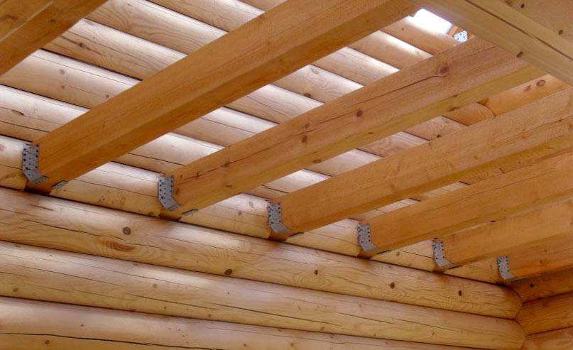 - перекрытие выполняется из той же породы дерева, что использовалась для возведения сруба: балки укладываются по короткой стороне сруба, необходимо соблюдать шаг минимум 1 метр;