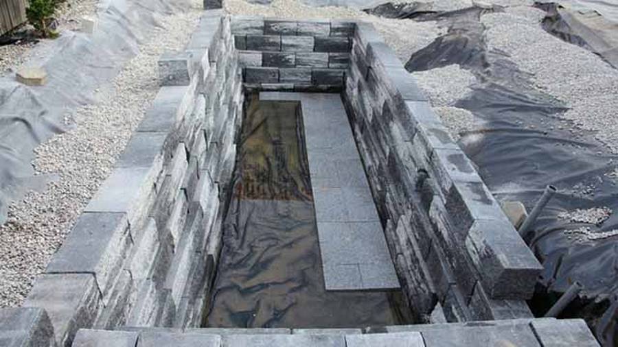 - чаша водоёма сделана из бетонного раствора. Это длительный и дорогостоящий метод;