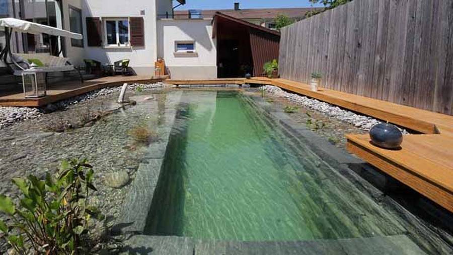 В сильную жару вода из прудов подобного плана будет испаряться, поэтому придётся добавлять её вручную. Декоративный плавательный пруд, который также подойдёт для разведения рыбы, можно построить собственноручно