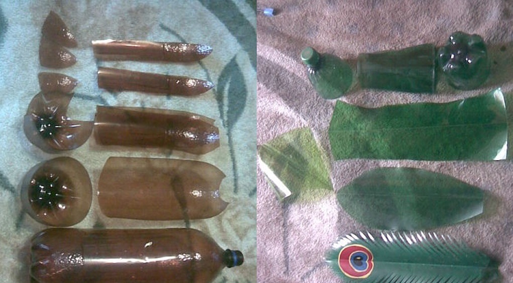 Для создания павлина из бутылок, потребуются следующие элементы: