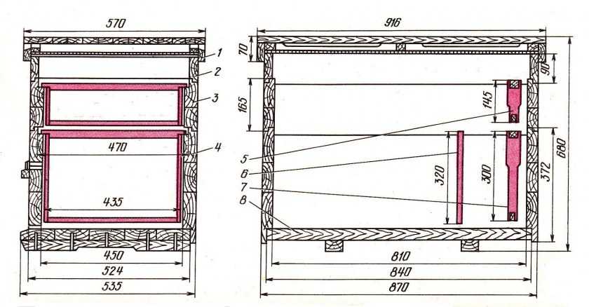 Примерно по такой же методике можно сооружать ульи на 14-ть и 16-ть рамок. Они очень надежные, пчелам в них очень комфортно. Единственный недостаток подобных моделей – вес.