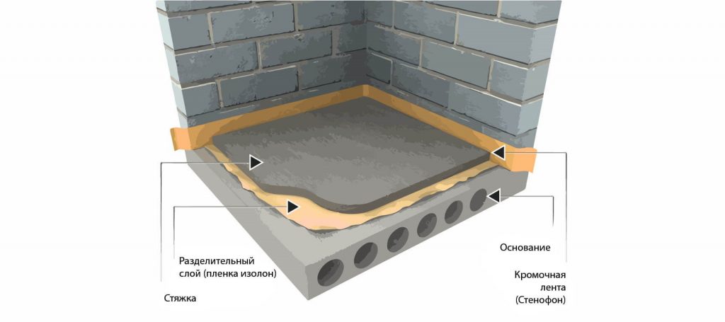 - По периметру комнаты рекомендуется устроить демпферную ленту из упругого пенофола, на высоту всего пирога пола. Не стоит забывать, что любой утеплитель одновременно является вибропоглощающим материалом, правильный монтаж которого существенно повышает комфорт жильцов.
