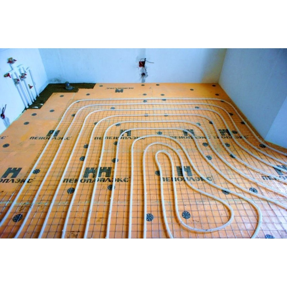 - Другой способ – монтаж труб теплого водяного пола в пазы, вырезанные в пенополистироле. Внутрь укладываются трубы, после чего заливается стяжка.