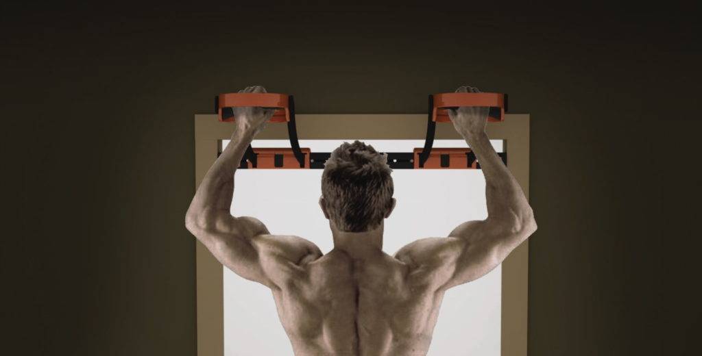 - Наддверной турник. Это более удобный, простой и компактный вид турника. Такой спортивный снаряд закрепляется над дверным проемом. Его также условно можно назвать подвидом настенного турника. Это одна перекладина, что находится на расстоянии от стены с небольшим промежутком. В период выполнения такого упражнения все туловище и ноги тренирующегося могут уходить в проем двери. Это конечно может повлечь некоторые ограничения при выполнении из-за небольшого расстояния стены.