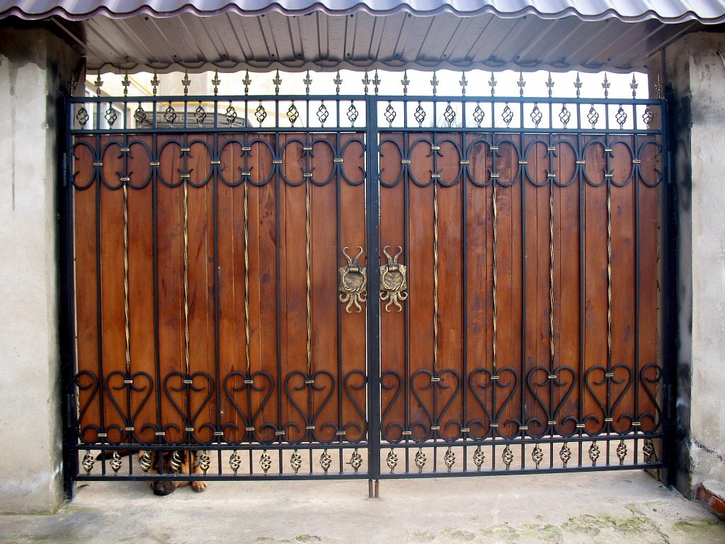 При наличии сварочного аппарата и паяльной лампы ковать из металла узор на створки можно самостоятельно. Впрочем, проще купить готовые элементы ковки, но обойдутся они гораздо дороже. К примеру, цена за 1 м2 готовой продукции составит не менее 1 тыс. рублей.