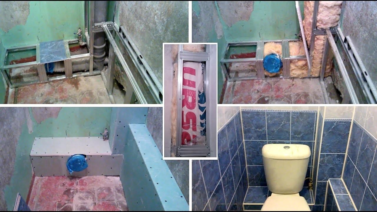 Какие материалы можно использовать, мы разобрались. Осталось понять, как закрыть трубы в туалете с помощью этих материалов. Сначала рассмотрим, как сделать каркас под зашивку из гипсокартона или пластиковых панелей. Работы ведём в несколько этапов (см. видео в конце статьи):