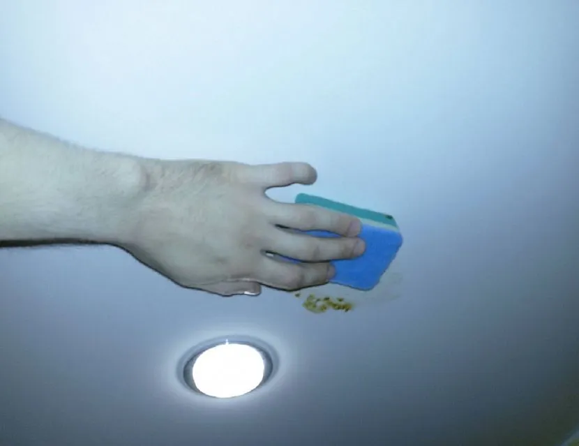 Способ № 1. На мягкую ворсистую ткань следует накапать нашатырь и обработать пораженное место. Если смешать нашатырь с мыльным раствором, то отчищающее действие усиливается. Нанесенный раствор нужно оставить на поверхности потолка на 10 минут, а затем протереть чистой влажной тряпкой.