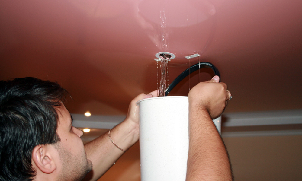 Слив воды с натяжного потолка: как убрать воду самостоятельно + видео