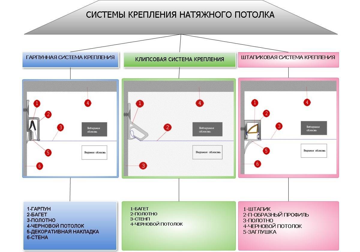 Откуда вы можете узнать тип крепления, если сами вы потолок не устанавливали. Здесь все достаточно просто — в договоре о выполненных работах тип крепления прописан. Если вы и его не можете отыскать, смотрите наш материал и идентифицируйте крепления, установленные в вашем жилище.