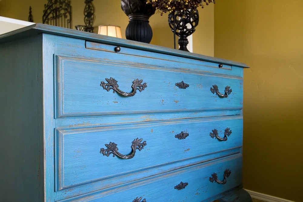Чтобы ваша мебель выглядела обшарпанной и потертой, можно воспользоваться техникой окрашивания.