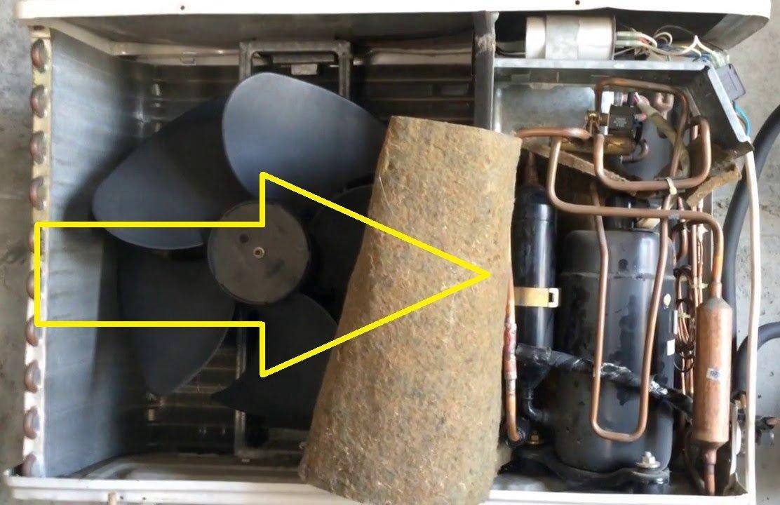 У вентиляторов проблема та же – износ подшипников. Крыльчатка проседает и начинает задевать защитную решетку, расположенную сзади, или дно корпуса. Самое опасное – когда лопатки прибора задевают конденсатор. Это может привести к появлению дефектов в трубках и утечке хладагента.