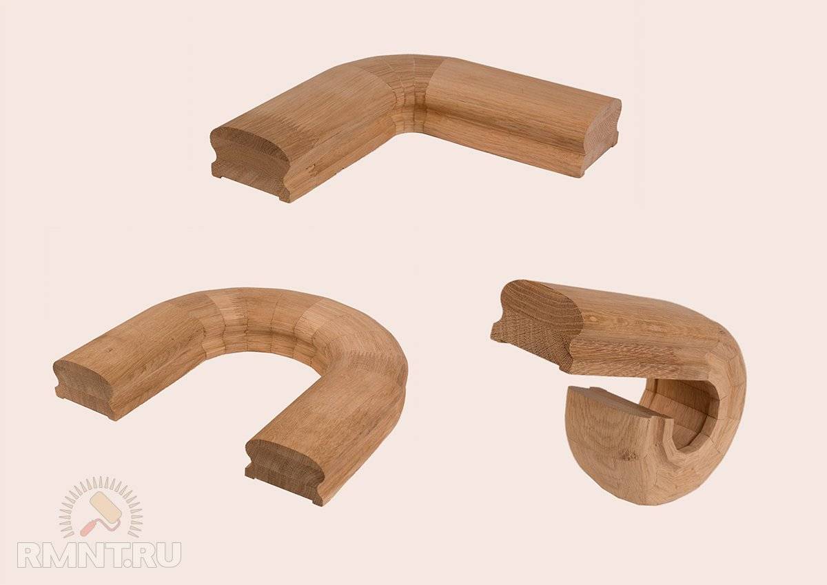 Иногда на углах и разворотах лестничных пролетов расстояние между маршами вынуждает устанавливать короткие вставки поручней между столбами. В зависимости от конфигурации лестницы эти участки собирают либо из одного или нескольких радиусных сегментов, либо из линейных отрезков. Элементы перил подготавливают и склеивают заранее, соединение выполняется на потайных шипах типа «домино», либо на 2–3 цилиндрических шкантах.