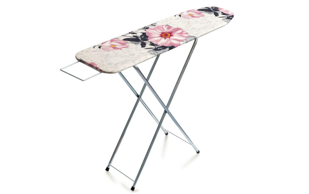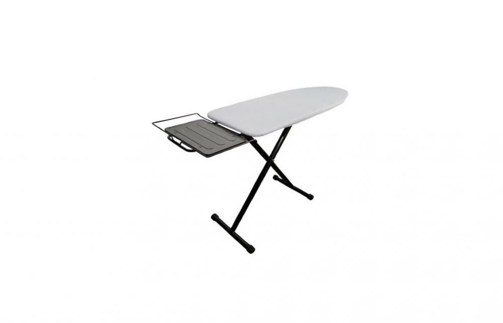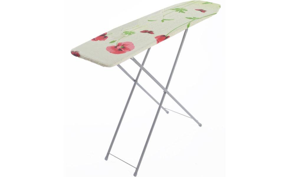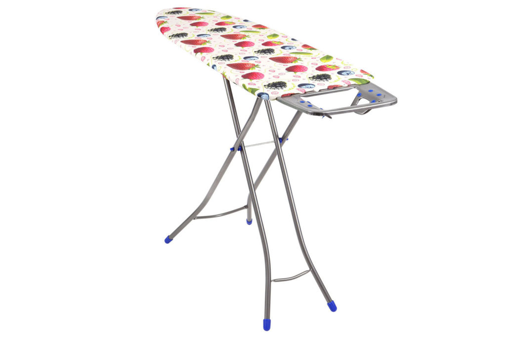 Сравнение с конкурентами творение марки Gimi выигрывает за счет того, что оно отлично адаптировано для работы со всевозможными типами одежды и белья. Материал основы – стальная сетка, чехол – хлопковый с ярким цветочным принтом и мольтоновой подкладкой. Конструкция дополнена встроенной подставкой для утюга или даже среднего по габаритам парогенератора, которая к тому же оборудована поворотным механизмом. Этакий бонус для левшей.